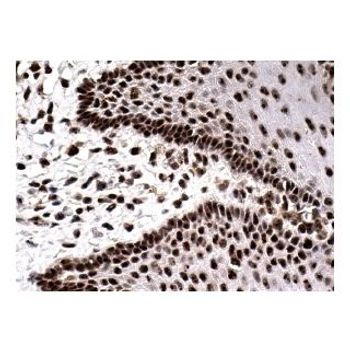 mouse monoclonal IgG1; UBF Antibody (F-9) is an IgG1 κ mouse monoclonal UBF antibody (also designated UBTF antibody, or UBF1 antibody) that detects the UBF protein of mouse, rat and human origin by WB, IP, IF, IHC(P) and ELISA. UBF Antibody (F-9) is available as both the non-conjugated anti-UBF antibody form, as well as multiple conjugated forms of anti-UBF antibody, including agarose, HRP, PE, FITC and multiple Alexa Fluor® conjugates. The transcription of ribosomal RNA genes by RNA polymerase I (Pol I) is tightly coordinated with the growth state of the cell. In addition to Pol I, transcription of ribosomal genes requires the trans-activating factor UBF (upstream binding factor). UBF functions by binding to DNA elements within the RNA gene promoter and enhancer regions and directly associating with Pol I, tethering it to the promoter complex. Two UBF proteins arise from the same gene as a result of alternative mRNA splicings. UBF activity is regulated by several dependent casein kinase II phosphorylates at the carboxy terminus of UBF on serine residues. The retinoblastoma susceptibility gene product, Rb, when not bound to E2F family members, inhibits UBF activity. Expression of RNA may also be negatively regulated by the two Ku antigens.