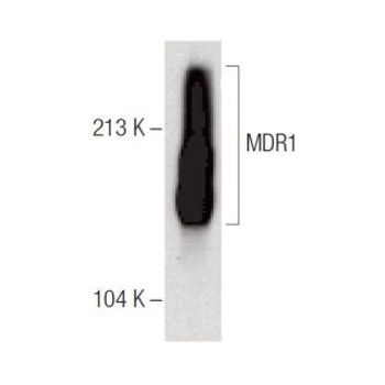 mouse monoclonal IgG2b; MDR1/ABCB1 Antibody (G-1) is an IgG2b κ mouse monoclonal MDR1 antibody that detects MDR1 of human origin by WB, IP, IF, IHC(P) and ELISA. MDR1/ABCB1 Antibody (G-1) is available as the non-conjugated anti-MDR1 antibody form, as well as multiple conjugated forms of anti-MDR1 antibody, including agarose, HRP, PE, FITC and multiple Alexa Fluor® conjugates. Cells selected for resistance to a single cytotoxic drug may become cross-resistant to a broad range of drugs with different structures and cellular targets. This phenomenon is called multiple drug resistance (MDR). MDR proteins (Mdrs) are members of a highly conserved superfamily of ATP-binding cassette transport proteins. MDR1 is an apical transmembrane protein that is an integral part of the blood-brain barrier and functions as a drug-transport pump transporting a variety of drugs from the brain back into the blood. The MDR1 gene is also known as ABCB1 and is located on human chromosome 7. The mouse homolog of MDR1 is known as Mdr-3. Interestingly, a murine protein by the name of Mdr-1 exists and is encoded by the murine Abcb1b gene, but it is not homologous with human Mdr-1.