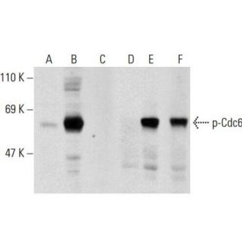 mouse monoclonal IgG1; Cdc6 Antibody (D-1) is an IgG1 κ mouse monoclonal Cdc6 antibody that detects Cdc6 of human origin by WB, IP, IF and ELISA. Cdc6 Antibody (D-1) is available as the non-conjugated anti-Cdc6 antibody form, as well as multiple conjugated forms of anti-Cdc6 antibody, including agarose, HRP, PE, FITC and multiple Alexa Fluor® conjugates. Cell cycle events are regulated by the sequential activation and deactivation of cyclin dependent kinases (Cdks) and by the proteolysis of cyclins. The cell division control (Cdc) genes are required at various points in the cell cycle. Cdc25A, Cdc25B and Cdc25C protein Tyrosine phosphatases function as mitotic activators by dephosphorylating Cdc2 p34 on regulatory Tyrosine residues. Cdc6 is the human homolog of Saccharomyces cerevisiae Cdc6, which is involved in the initiation of DNA replication. Cdc37 appears to facilitate Cdk4/cyclin D1 complex formation and has been shown to form a stable complex with HSP 90. Cdc34, Cdc27 and Cdc16 function as ubiquitin-conjugating enzymes. Cdc34 is thought to be the structural and functional homolog of Saccharomyces cerevisiae Cdc34, which is essential for the G1 to S phase transition. Cdc16 and Cdc27 are components of the APC (anaphase-promoting complex) which ubiquitinates cyclin B, resulting in cyclin B/Cdk complex degradation.