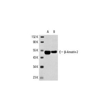 mouse monoclonal IgG1; β-Arrestin-2 Antibody (H-9) is an IgG1 κ mouse monoclonal β-Arrestin-2 antibody (also designated β-Arrestin-2 antibody or beta Arrestin antibody) that detects β-Arrestin-2 of mouse, rat and human origin by WB, IP, IF, IHC(P), FCM and ELISA. β-Arrestin-2 Antibody (H-9) is available as both conjugated and non-conjugated anti-β-Arrestin-2 antibody forms. The members of the G protein coupled receptor family are distinguished by their slow transmitting response to ligand binding. These seven transmembrane proteins include the adrenergic, serotonin and dopamine receptors. The effect of the signaling molecule can be excitatory or inhibitory depending on the type of receptor to which it binds. Members of the β-Arrestin family regulate receptor binding to G proteins. β-Arrestins have been found to be located at postsynaptic sites, where they are thought to act in concert with βARK (βARK1, also designated GRK 2, or βARK2, also designated GRK 3) to regulate G protein-coupled neurotransmitter receptors. Expression of β-Arrestin-1 and b-Arrestin-2 is seen predominantly in spleen and neuronal tissues. It has been shown that β-Arrestin-1 expression is modulated by intracellular cAMP, which may be a novel mechanism for the regulation of receptor-mediated responses.