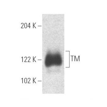 mouse monoclonal IgG2a; TM Antibody (D-3) is an IgG2a κ mouse monoclonal TM antibody (also designated THBD antibody, TRBM antibody, Fetomodulin antibody, CD141 antibody, THRM antibody, TM antibody, THPH12 antibody, AHUS6 antibody, or BDCA3 antibody) that detects the TM protein of human origin by WB, IP, IF, IHC(P) and FCM. TM Antibody (D-3) is available as both the non-conjugated anti-TM antibody form, as well as multiple conjugated forms of anti-TM antibody, including agarose, HRP, PE, FITC and multiple Alexa Fluor® conjugates. Thrombomodulin (TM), also called CD141, is a type I membrane receptor that is specific to endothelial cells. TM has a cysteine-rich extracellular domain with six EGF-like regions. It forms a complex with Thrombin, which activates Protein C to generate activated Protein C (APC), an anticoagulant enzyme. APC together with Protein S inhibits coagulation by inactivating Factors Va and VIIIa. Deletion of the TM gene results in embryonic lethality in mice.