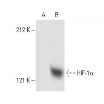 mouse monoclonal IgG1; HIF-1α Antibody (28b) is an IgG1 κ mouse monoclonal HIF-1 alpha antibody (also designated HIF1A antibody or HIF-1 alpha antibody) that detects the HIF-1 alpha protein of mouse, rat and human origin by WB, IP, IF and IHC(P). HIF-1α Antibody (28b) is available as both the non-conjugated anti-HIF-1 alpha antibody form, as well as multiple conjugated forms of anti-HIF-1 alpha antibody, including agarose, HRP, PE, FITC and multiple Alexa Fluor® conjugates. Cell growth and viability is compromised by oxygen deprivation (hypoxia). Hypoxia-inducible factors, including HIF-1α, HIF-1β (also designated Arnt 1), EPAS-1 (also designated HIF-2α) and HIF-3α, induce glycolysis, erythropoiesis and angiogenesis in order to restore oxygen homeostasis. Hypoxia-inducible factors are members of the Per-Arnt-Sim (PAS) domain transcription factor family. In response to hypoxia, HIF-1α is upregulated and forms a heterodimer with Arnt 1 to form the HIF-1 complex. The HIF-1 complex recognizes and binds to the hypoxia responsive element (HRE) of hypoxia-inducible genes, thereby activating transcription. Hypoxia-inducible expression of some genes such as Glut-1, p53, p21 or Bcl-2, is HIF-1α dependent, whereas expression of others, such as p27, GADD 153 or HO-1, is HIF-1α independent. EPAS-1 and HIF-3α have also been shown to form heterodimeric complexes with Arnt 1 in response to hypoxia.