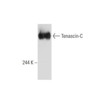 mouse monoclonal IgG1; The tenascin family of extracellular matrix proteins includes Tenascin-C (also designated cytotactin or Tenascin), Tenascin-R (also designated restrictin, TN-R or janusin) and Tenascin-X. Tenascin proteins function as substrate-adhesion molecules (SAMs) and are involved in regulating numerous developmental processes, such as morphogenetic cell migration and organogenesis. The tenascin family proteins arise from various splicing events in the region of coding for FNIII repeats. Tenascin-C and Tenascin-X are expressed in several tissues during embryogenesis and in adult tissues undergoing active remodeling, such as healing wounds and tumors. Tenascin-R is expressed on the surface of neurons and glial cells.