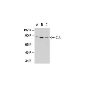 mouse monoclonal IgG2a; CUL-1 Antibody (D-5) is an IgG2a κ mouse monoclonal CUL-1 antibody (also designated Cullin-1 antibody or CUL1 antibody) that detects the CUL-1 protein of mouse, rat and human origin by WB, IP, IF, IHC(P) and ELISA. CUL-1 Antibody (D-5) is available as both the non-conjugated anti-CUL-1 antibody form, as well as multiple conjugated forms of anti-CUL-1 antibody, including agarose, HRP, PE, FITC and multiple Alexa Fluor® conjugates. Cullin proteins comprise a distinct family of mediators that participate in the selective targeting of proteins for ubiquitin (Ub)-mediated proteolysis. CUL-1, which is the mammalian homolog of yeast Cdc53, is an integral component of the E3 ubiquitin ligase complex designated SCF. The SCF (Skp1/CUL-1/F-box protein complex) consists of Skp1 associating with both CUL-1 and an F-box protein, such as Skp2, which determines the substrate specificity of the complex. CUL-1-mediated ubiquitination results in the degradation of cell cycle proteins cyclin D, p21 and cyclin E. Another cullin, CUL-3, facilitates the degradation of cyclin E independent of SCF activity, while CUL-2 associates with the tumor suppressing protein VHL and elongin B to form VBC complexes, which structurally resemble the SCF ligase. Proteolysis also occurs by way of CUL-4 associating with Nedd-8, a ubiquitin-like protein, where it too functions as an active component of a multifunctional E3 complex. CUL-5, also designated vasopressin-activated, calcium-mobilizing protein (VACM-1), is also included in the cullin family as it shares substantial sequence homology with CUL-1.