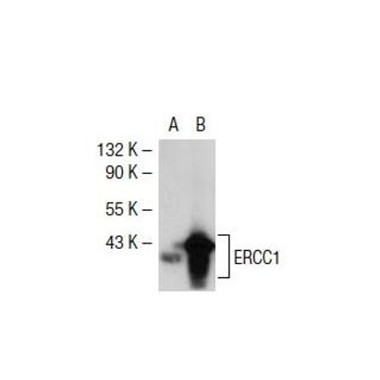 mouse monoclonal IgG2b; ERCC1 Antibody (D-10) is an IgG2b κ mouse monoclonal ERCC1 antibody that detects the ERCC1 protein of mouse, rat and human origin by WB, IP, IF, IHC(P) and ELISA. ERCC1 Antibody (D-10) is available as both the non-conjugated anti-ERCC1 antibody form, as well as multiple conjugated forms of anti-ERCC1 antibody, including agarose, HRP, PE, FITC and multiple Alexa Fluor® conjugates. Xeroderma pigmentosum (XP) is an autosomal recessive disorder characterized by a genetic predisposition to sunlight-induced skin cancer; it is commonly due to deficiencies in DNA repair enzymes. The most frequent mutations are found in the XP genes from group A through G and group V, which encode for nucleotide excision repair proteins. XPF, which is also designated ERCC4 or ERCC11, associates directly with the excision repair cross-complementing 1 (ERCC1) factor. ERCC-1, a functional homolog of Rad10 in S. cerevisiae, is a component of a structure-specific endonuclease that is responsible for 5' incisions during DNA repair. The ERCC1-XPF endo-nuclease preferentially cleaves one strand of DNA between duplex and single-stranded regions near borders of the stem-loop structure and, thereby, contributes to the initial steps of the nucleotide excision repair process.