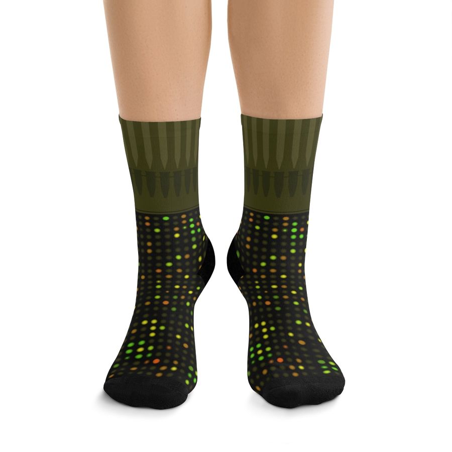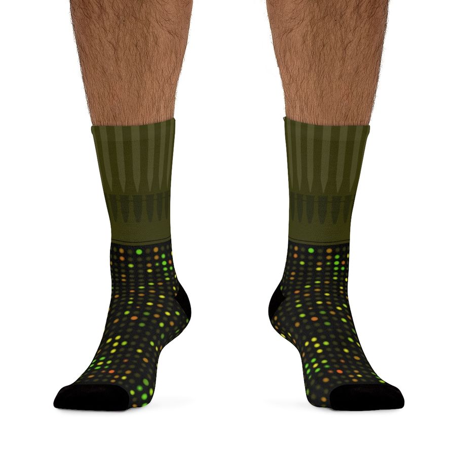 Pipette away! These black and gray socks feature a muted design of pipettes around the calf and colorful DNA microarrays around the rest of the sock. The diagnosis is in and these socks make the perfect fun accent to your wardrobe! These socks are made from a blend of 58% Recycled Polyester 22% Nylon 15% Cotton and 5% Elastane. They also fit from a Women's Size 5 (US) up to a Men's Size 12 (US). Sustainability and style pair perfectly in this pair of socks!