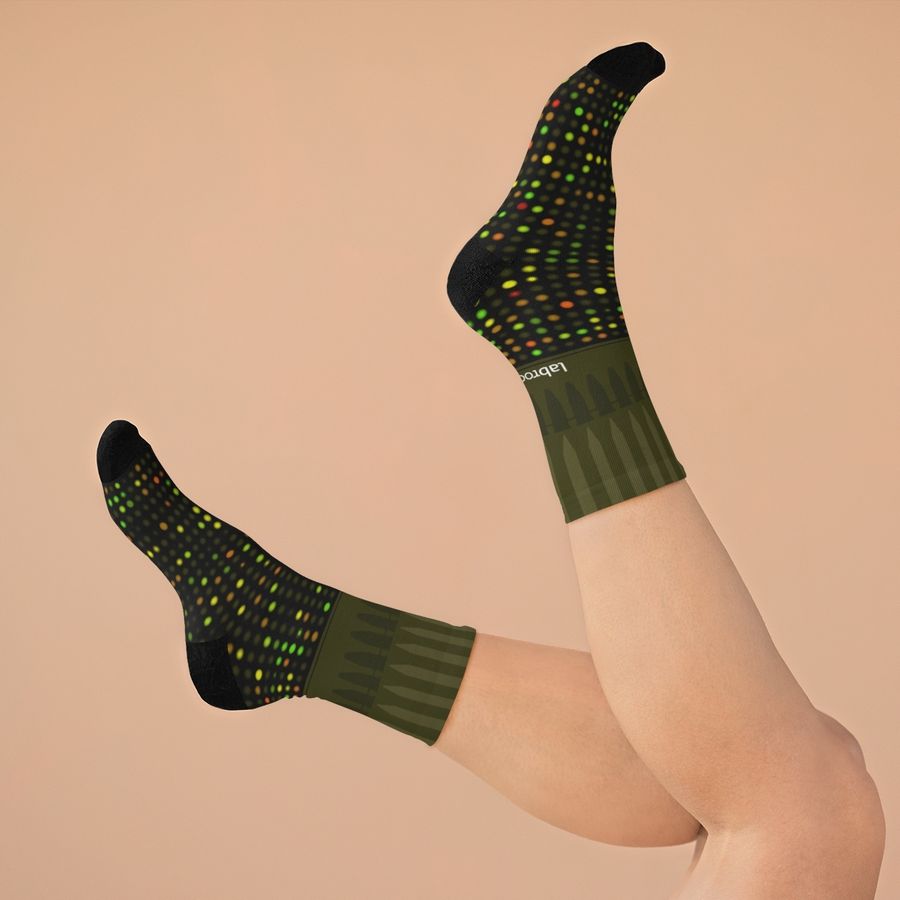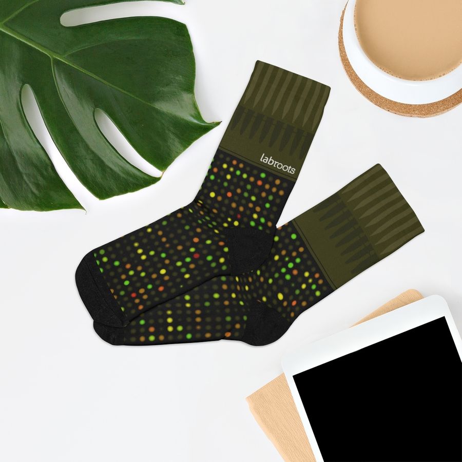 These Unisex, crew-length socks feature pipettes and DNA microarrays in a sleek design with fun pops of color.