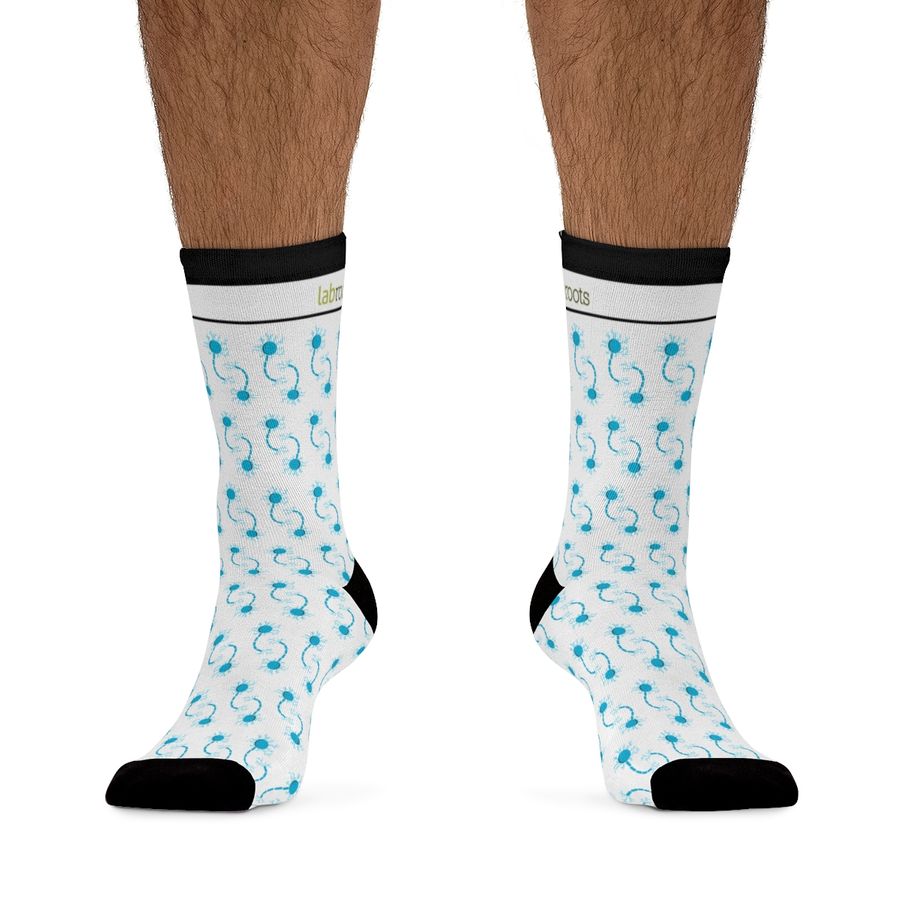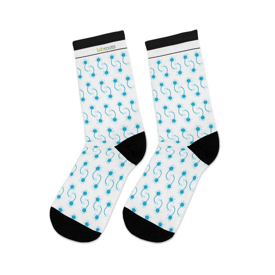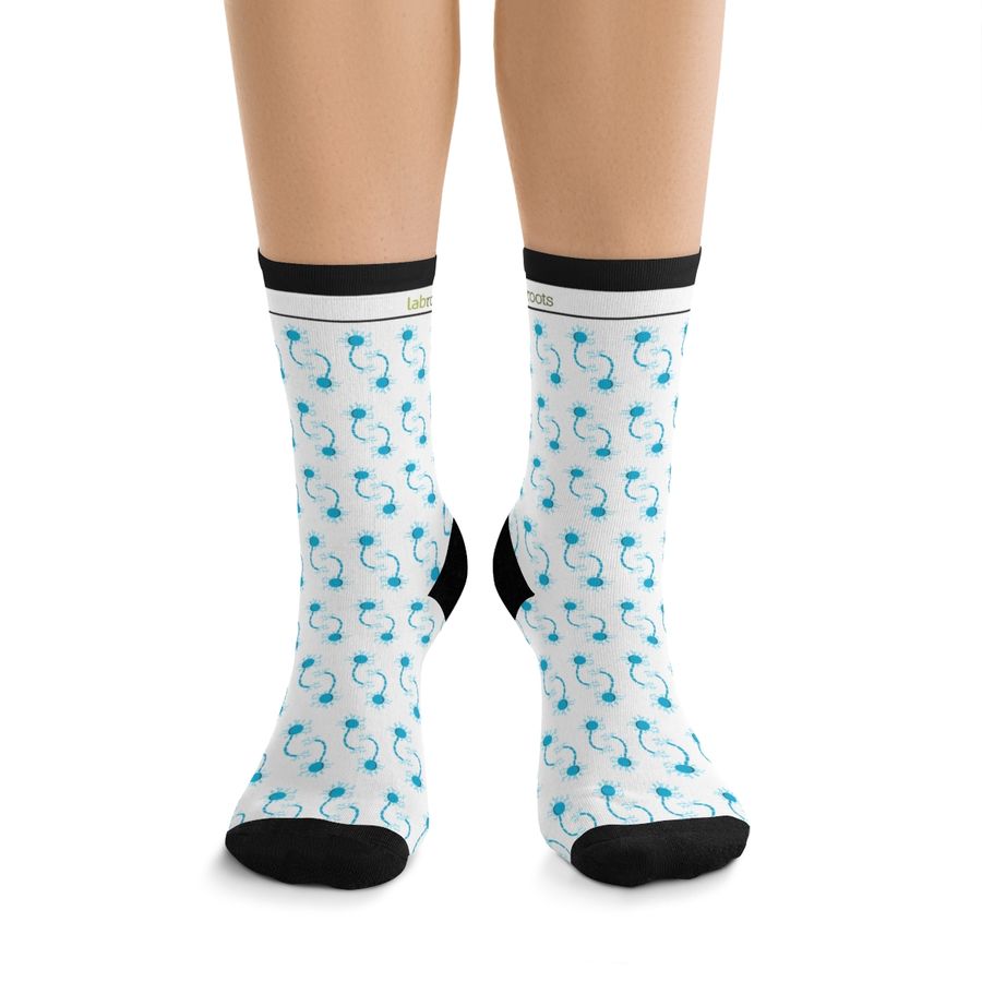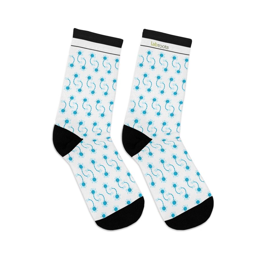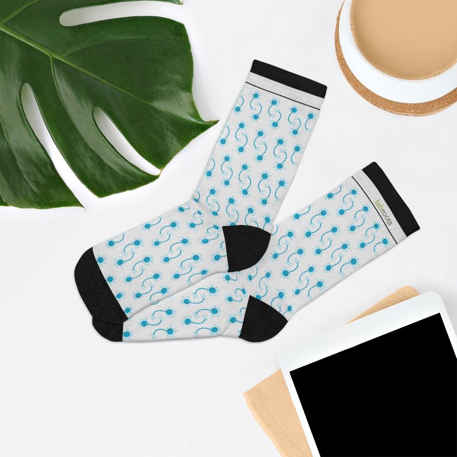 These Unisex, crew-length socks feature blue neurons, interweaving in a fun pattern.