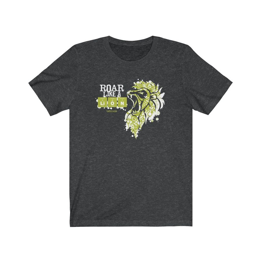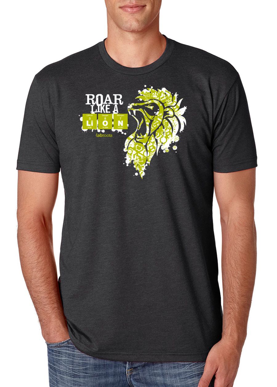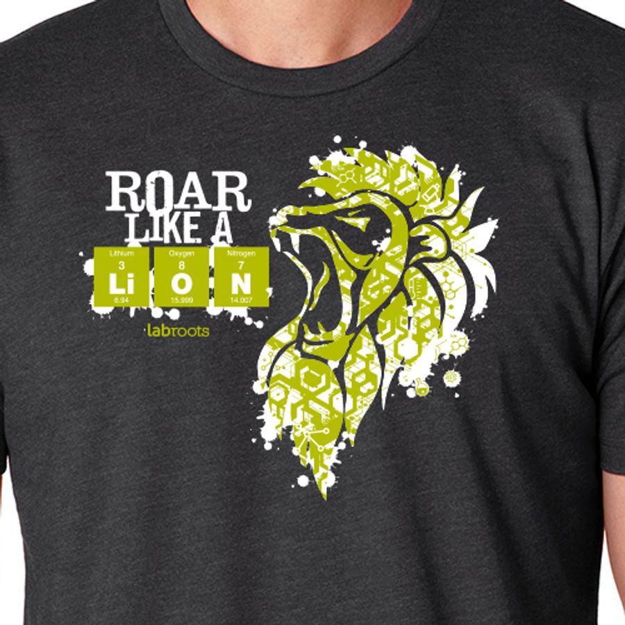 With a mane of chemical bonds, this two-toned lion design features the phrase “Like a lion Roar,” spelling ‘lion’ with three of the coolest elements - lithium, oxygen and nitrogen. The green and white design set on a charcoal tee - A perfect shirt for the entire pride back at the lab!