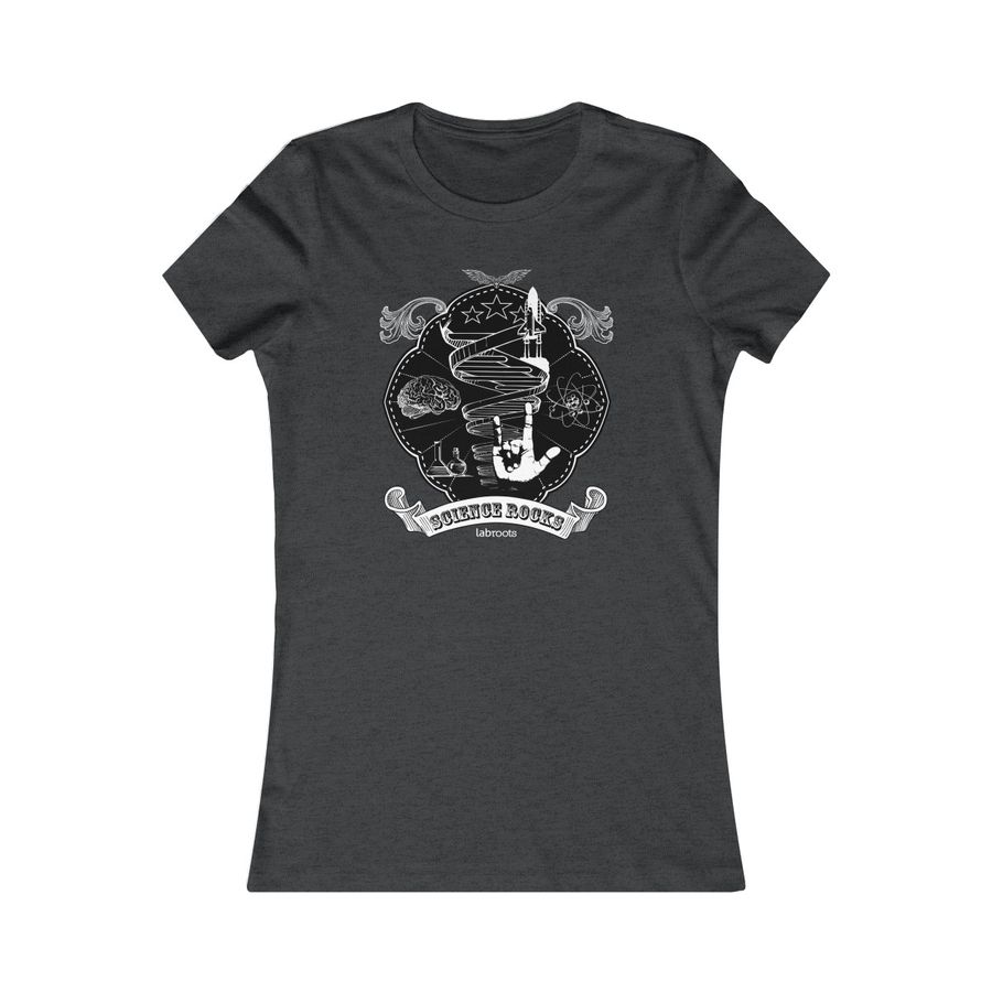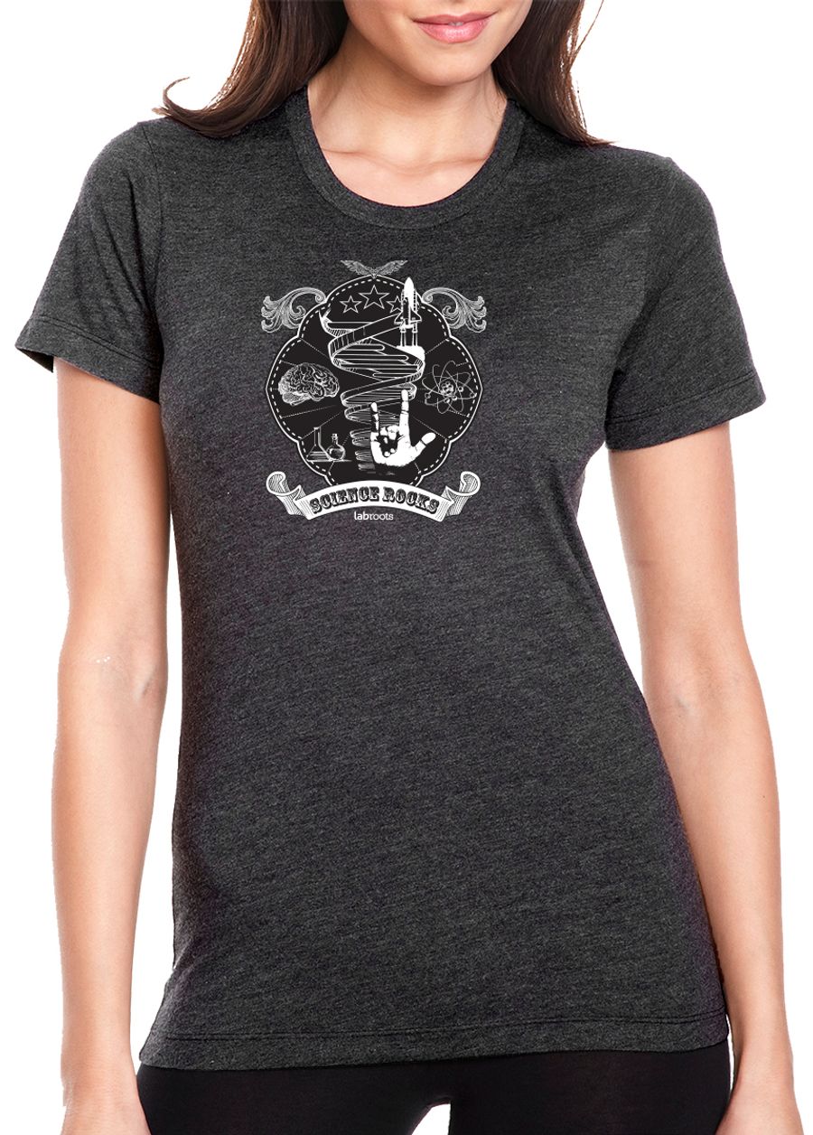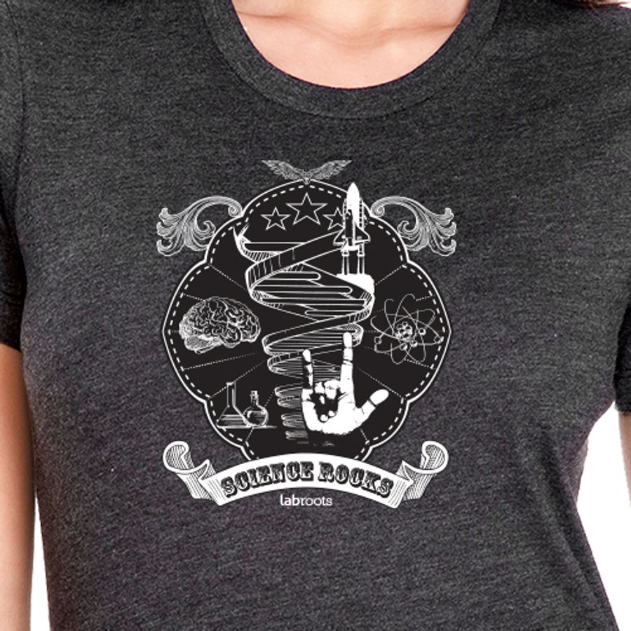 This tri-colored tribute to all things science design features elements from a variety of scientific fields, set on a charcoal ultra-soft shirt.