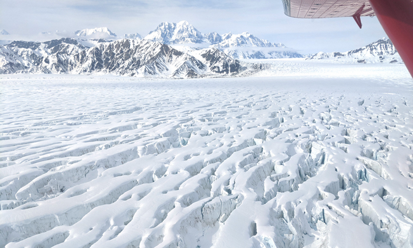 Airplance flyover of Malaspina Glacier and St. Elias Mountains on June 1, 2022.