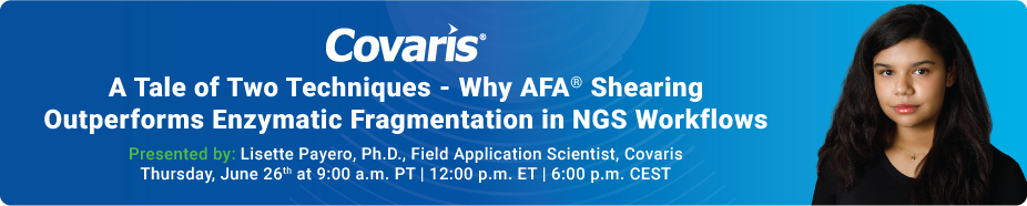 In this webinar, Dr. Lisette Payero from Covaris will walk us through the advantages of mechanical fragmentation using Adaptive Focused Acoustics® (AFA®) compared to enzyme-based approaches. Unlike enzymatic methods, which can introduce variability and sequence bias, Covaris AFA technology delivers precise, reproducible fragmentation across diverse sample types and input amounts.