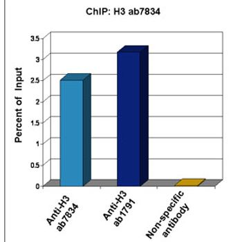 Rabbit Polyclonal H3 antibody. Nucleus marker. Suitable for IHC-P, ChIP, ICC/IF, IP, WB and reacts with Arabidopsis thaliana, Indian muntjac, Mouse, Rat, Human, Saccharomyces cerevisiae, Xenopus laevis, Drosophila melanogaster, Schizosaccharomyces pombe samples. Cited in 4737 publications.