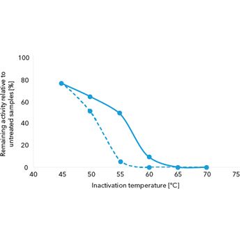 Histones and other proteins are known to protect nucleic acids from interacting optimally with other DNA binding proteins and enzymes. ArcticZymes Proteinase is ideally suited for transforming chromatin and other dense nucleic acids to naked DNA. The enzyme is easy to heat-inactivate. This allows thermal inactivation at temperatures allowing RNA integrity as well as avoiding dissociation of dsDNA.