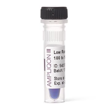 Low Range DNA Ladder is a convenient ready-to-use dsDNA ladder supplied in 0.5 ml packs for 250 lanes. It ranges from 100 - 1 000 bp and is mass-calibrated for easy DNA quantification./