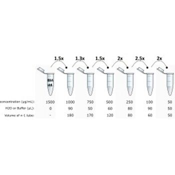 This kit is based on the reduction of Cu2+ to Cu1+ by protein in alkaline solution; monovalent copper ions produced are detected in a concentration-dependent manner. Bicinchoninic acid (BCA) chelates with the reduced copper Cu1+ and forms a water-soluble purple reaction complex that exhibits a strong absorbance at 562 nm. Absorbance is linear over a wide range of protein concentrations between 25-2000 µg/mL.  In general, protein concentrations are estimated with reference to a commonly used protein standard; the kit also includes Bovine Serum Albumin (BSA) at 1.5 mg/mL as a protein standard for a convenient preparation of protein concentration standard curves.